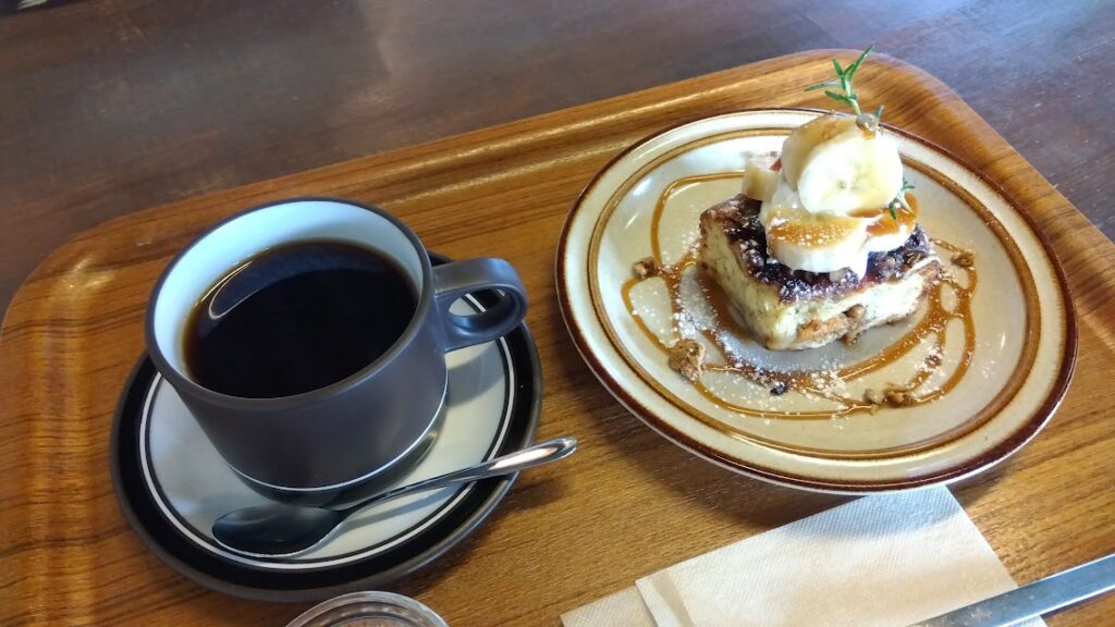 私が食べたのは、カフェタイムメニューのコーヒーと“バナナとくるみのケーキ”のセット🍌🌰☕️