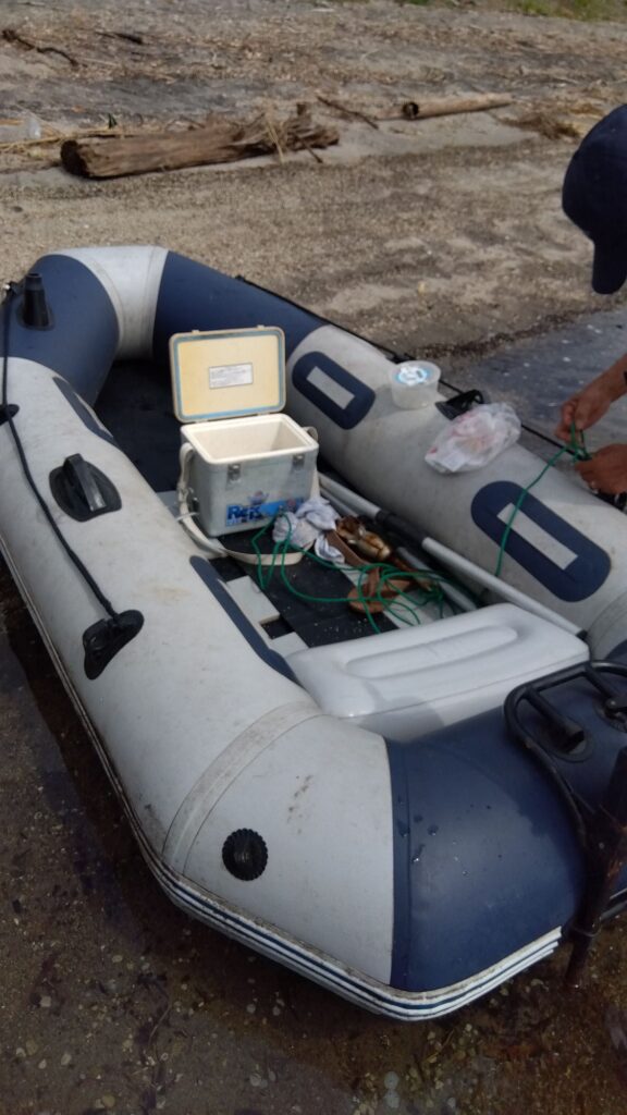エントリー直前、ゴムボートに船外機をつけた地元のおじいちゃんが釣りに出ていくところに遭遇。