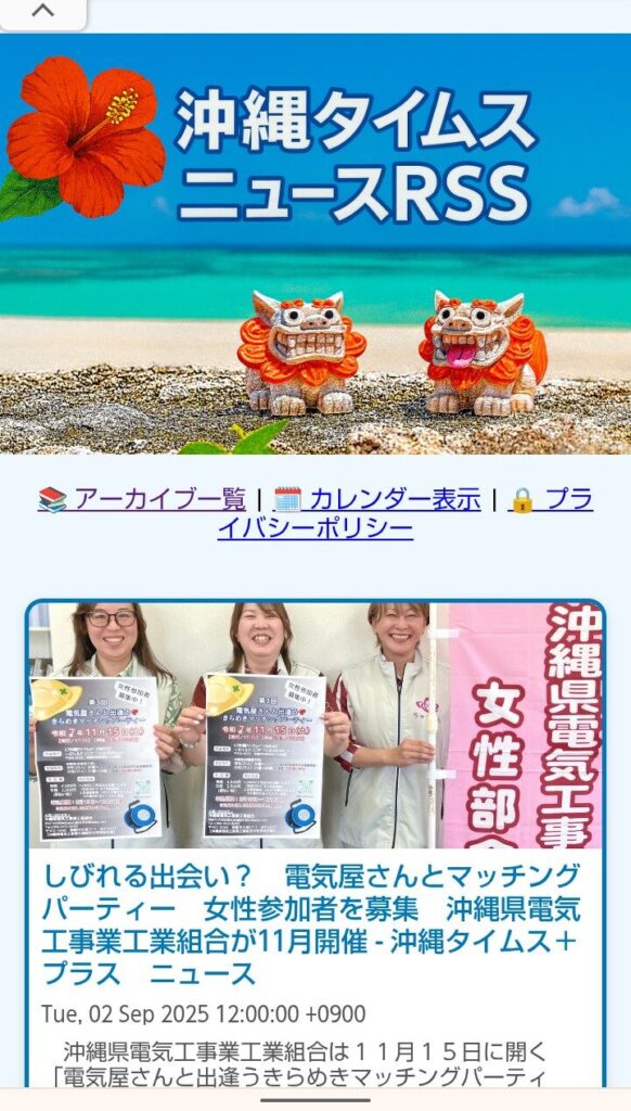 沖縄タイムスの最新記事を自動保存して、スマホやPCでサクッと見れる・聞けるRSS保存アプリになっています。