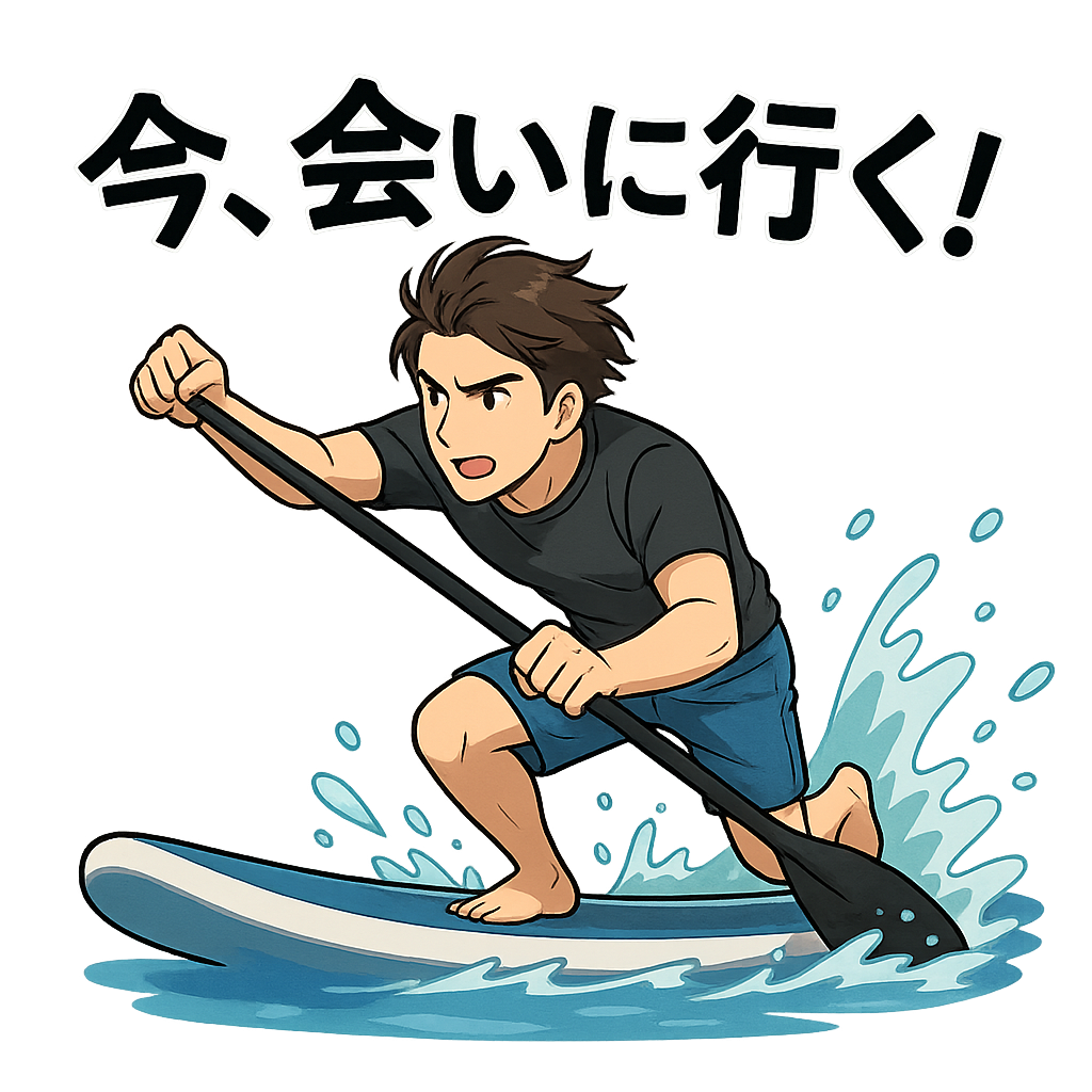 | 😎 サップ漕ぎ中のクールイケメン | 「今、会いにいく!」 |